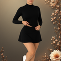 A blusa de manga longa com gola alta oferece um visual sofisticado e contemporâneo, enquanto a saia short integrada garante praticidade e liberdade para o uso diário.